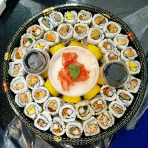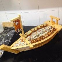 120+pieces of mixed fish and vegetable rolls. Comes with basic and specialty rolls including tempura, topped with fish, topped with avocado, topped with Crunch and nigiri. (Boat must be returned) - 940.00